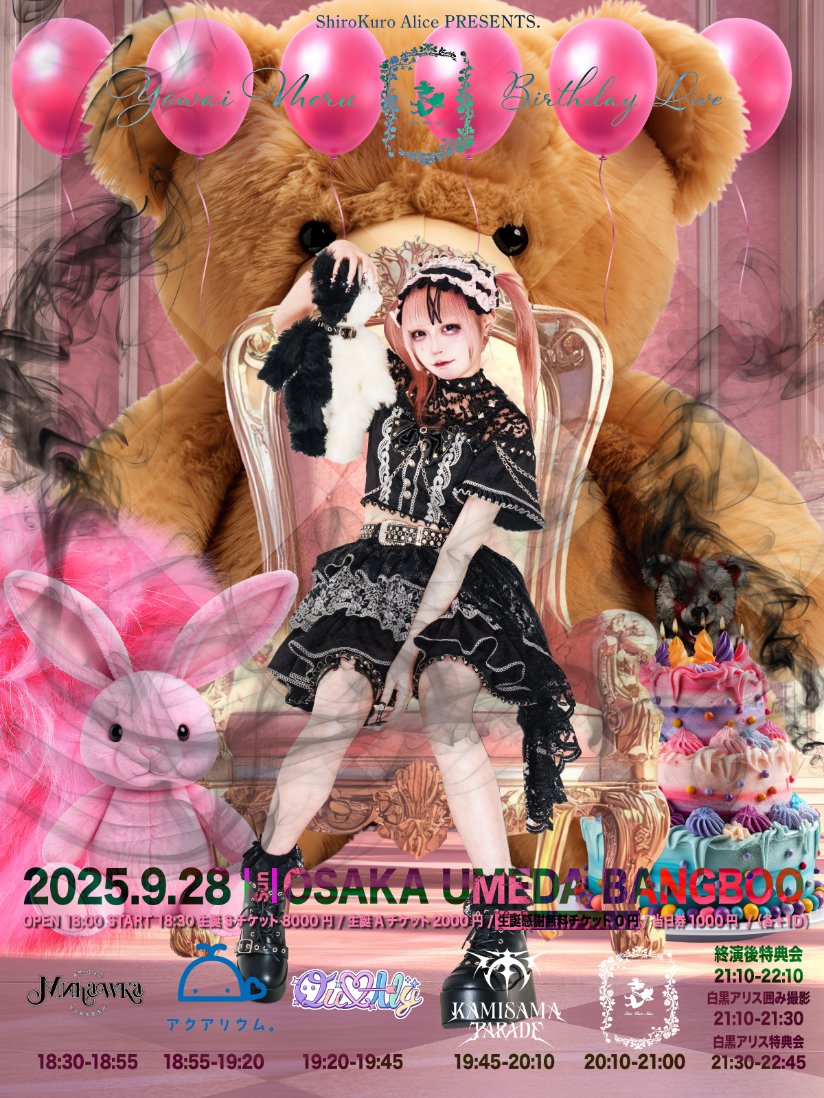 - 主演:白黒アリス ゲスト: カミサマパレード / Qu♡Aly / アクアリウム / ミラーシュカ