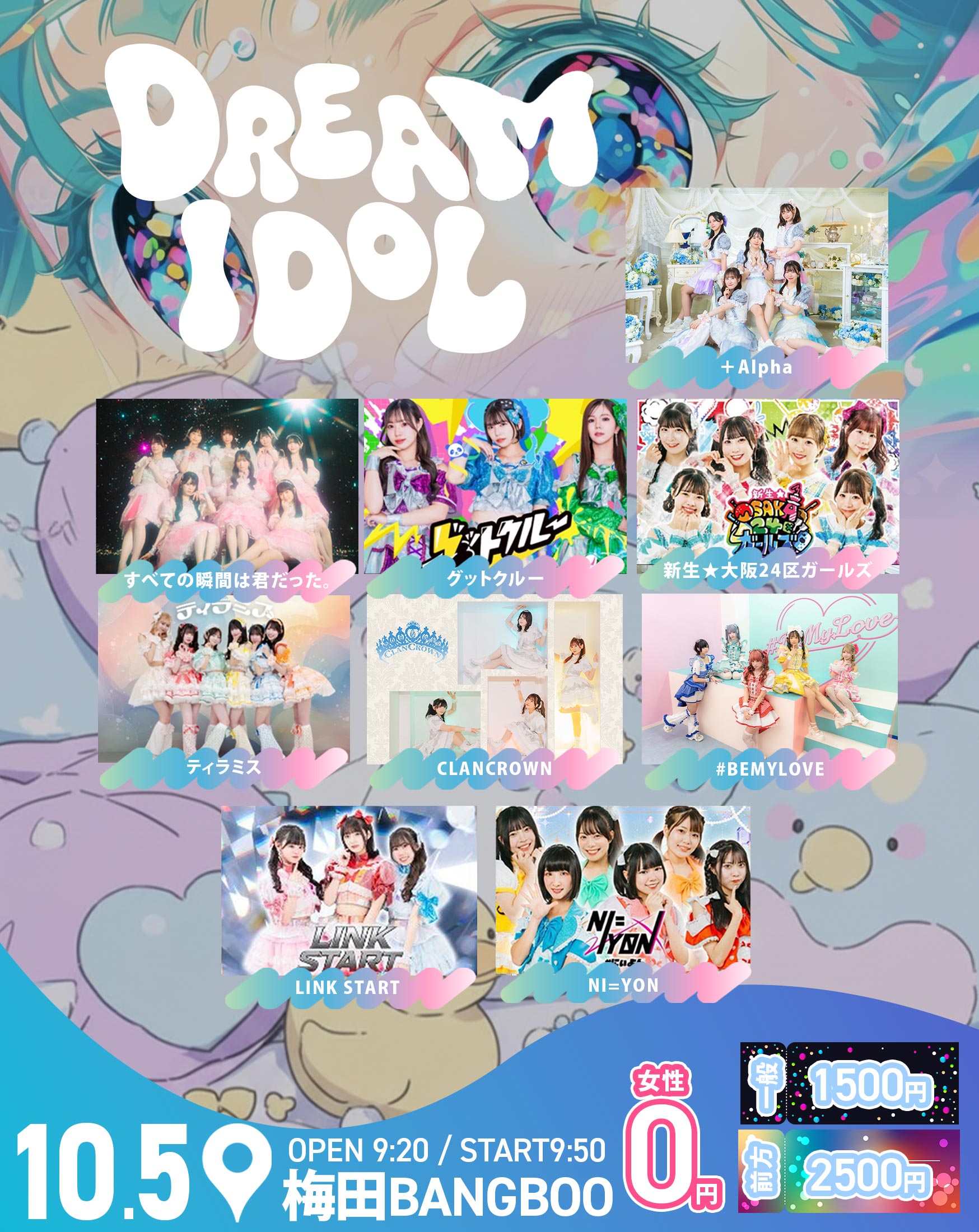 - + Alpha / すべての瞬間は君だった / グットクルー / 新生★大阪24区ガールズ / ティラミス / CLANCROWN / #BEMYLOVE / LINK START / NI=YON
