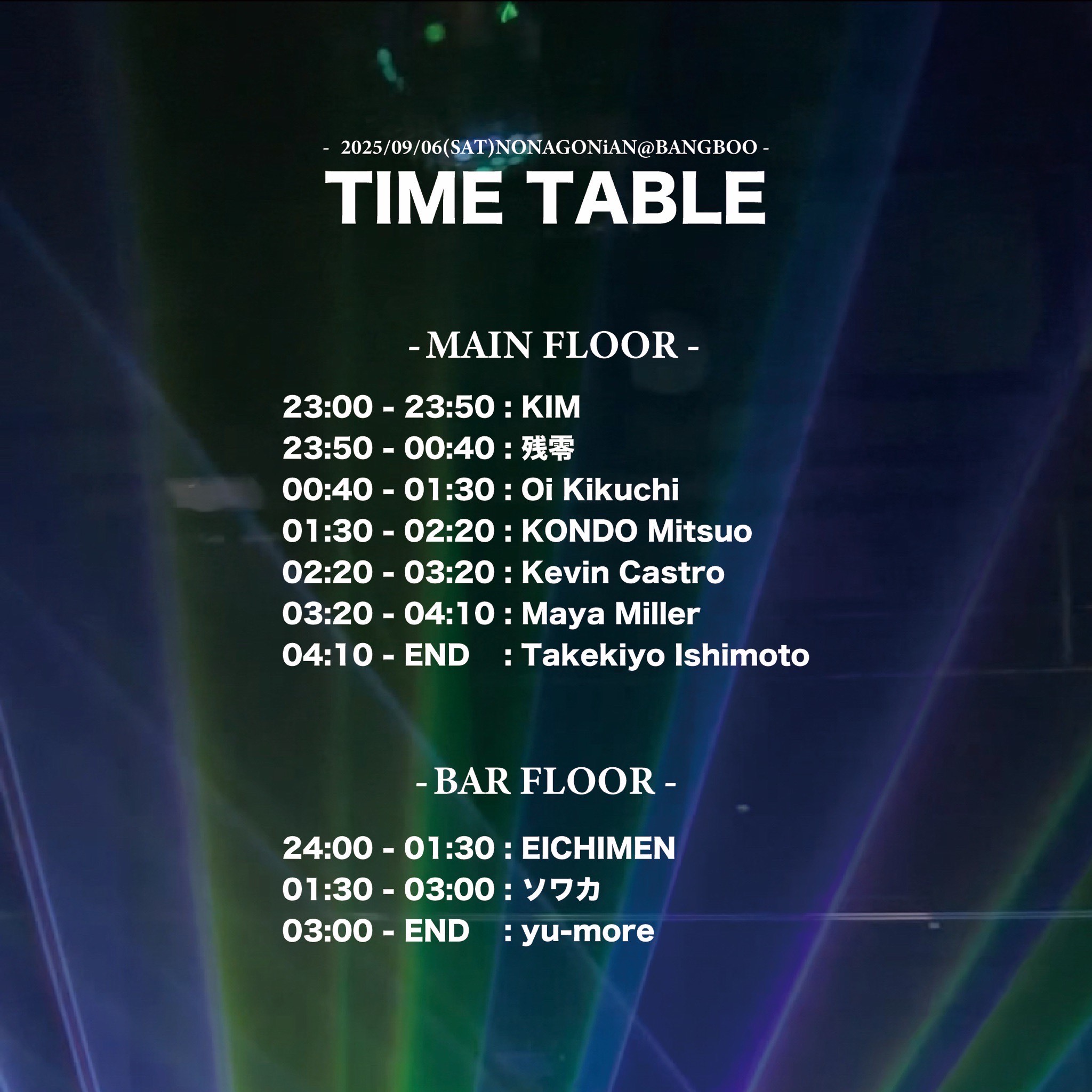 - GUEST DJ Kevin Castro (from SCI+TEC / Miami) / KIM / KONDO Mitsuo / Maya Miller / Oi Kikuchi / Takekiyo Ishimoto / 残零 ⬛︎NONAGONiAN Crew EICHIMEN / Kentaro UMEhara / UskeSightow / yu-more / ソワカ ⬛︎VJ KASHIKA / Ryotacreate