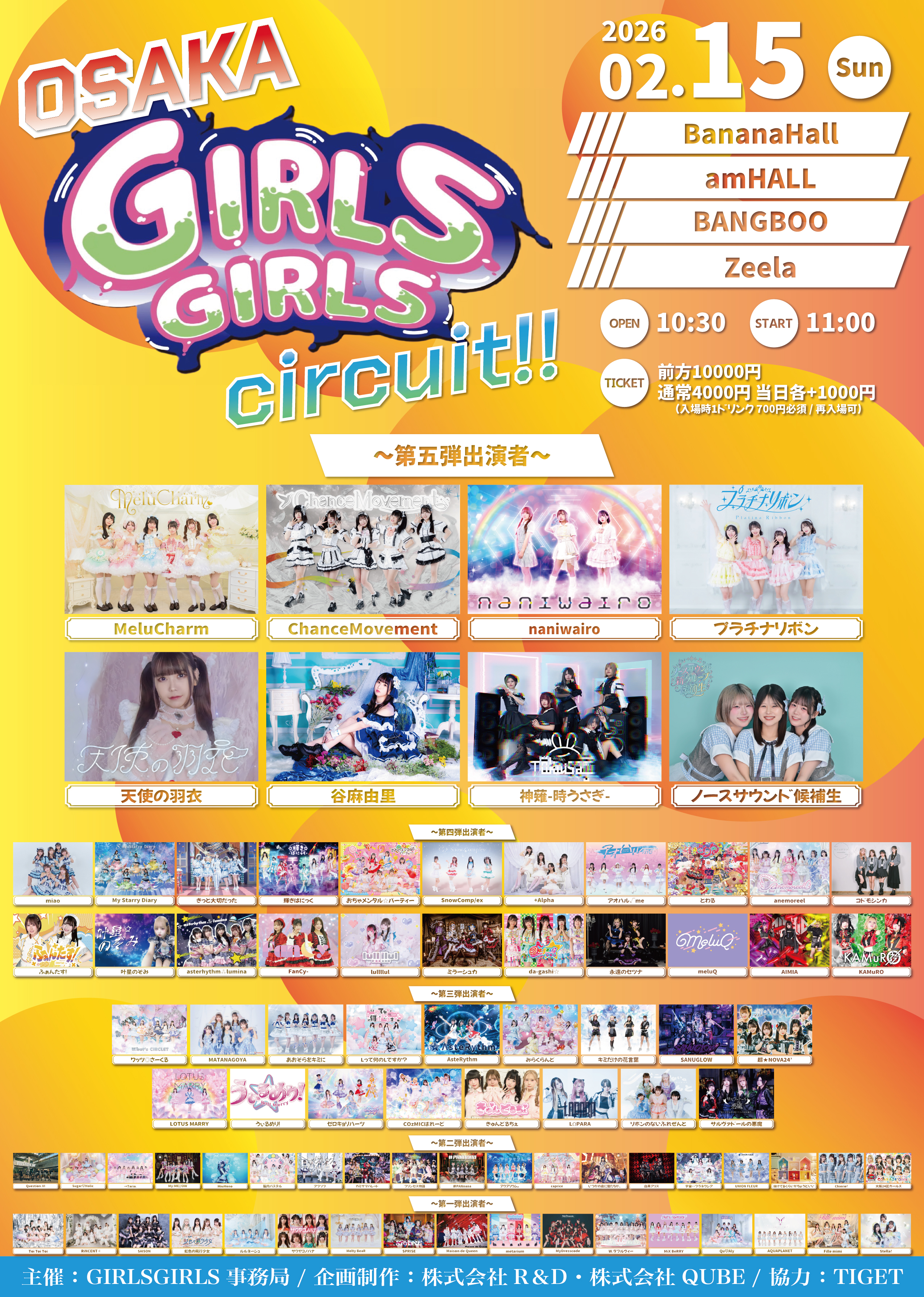 - 前方10000円 / 通常4000円 / 当日各+1000円 (入場時1ドリンク700円必須/再入場可)