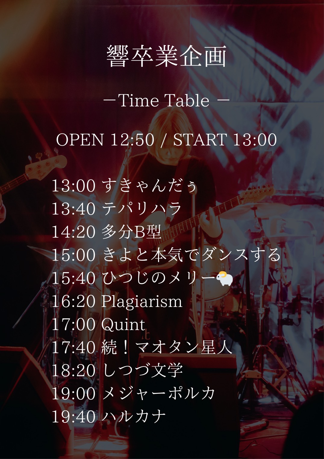 梅田 BANGBOO スケジュール 2026.1.05(Mon) 響卒業企 [ACT] すきゃんだう|テパリハラ|多分B型 きょと本気でダンスする|ひつじのメリー / PlagiarismIQuint続!マオタン星人つづ文学 メジャーポルカハルカナ [OPEN/START] OPEN 12:50 / START 13:00 [料金] FREEEEEEEE別途Drink代¥700 会場販売:無 (問)梅田BANGBOO info@bangboo.jp 06-6867-7828 〒530-0027 大阪府大阪市北区堂山町6-5 ペンギンスクエアビルB1F、B2F