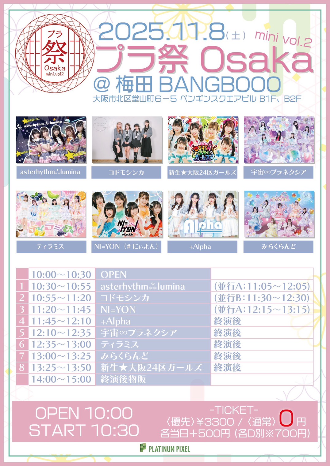 - asterhythm⁂lumina / コドモシンカ / 新生★大阪24区ガールズ / 宇宙∞プラネクシア / ティラミス / +Alpha / NI=YON / みらくらんど