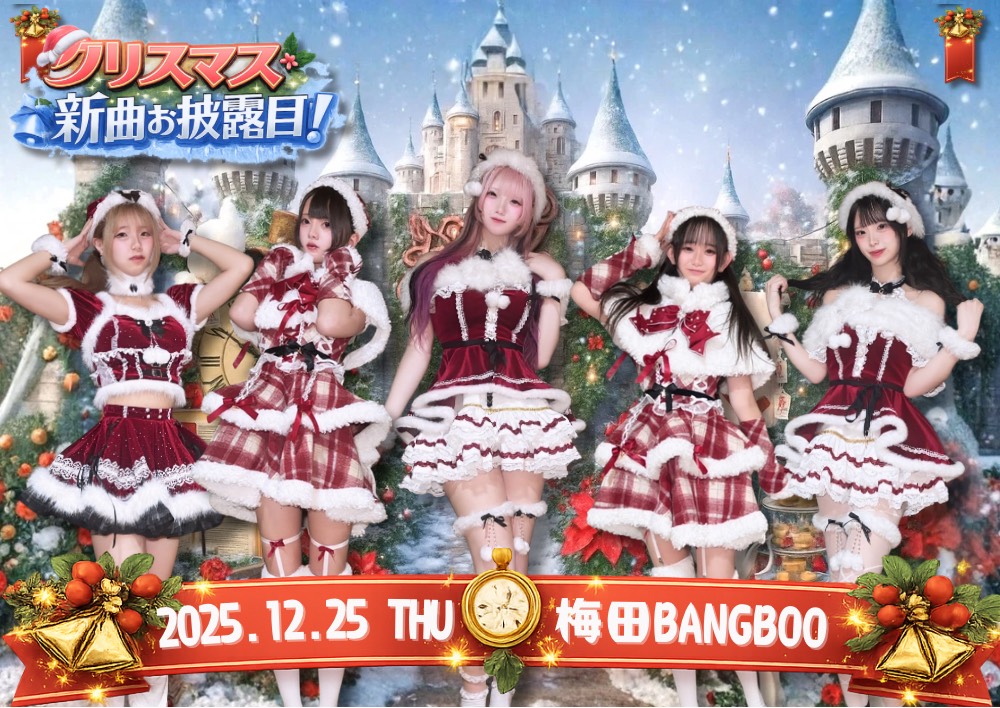 梅田 BANGBOO スケジュール 2025.12.25(Thu) LuvHz pre.午後5時のお茶会 番外編 -クリスマス新曲お披露目パーティ- [ACT] LuvHz / ハウツー世界征服 [OPEN/START] OPEN 16:00 / START 16:15 [料金] 各部 一般 ¥800- / 優先エリア ¥2,000-(1D) https://tiget.net/events/453277 会場販売:無 (問)梅田BANGBOO info@bangboo.jp 06-6867-7828 〒530-0027 大阪府大阪市北区堂山町6-5 ペンギンスクエアビルB1F、B2F