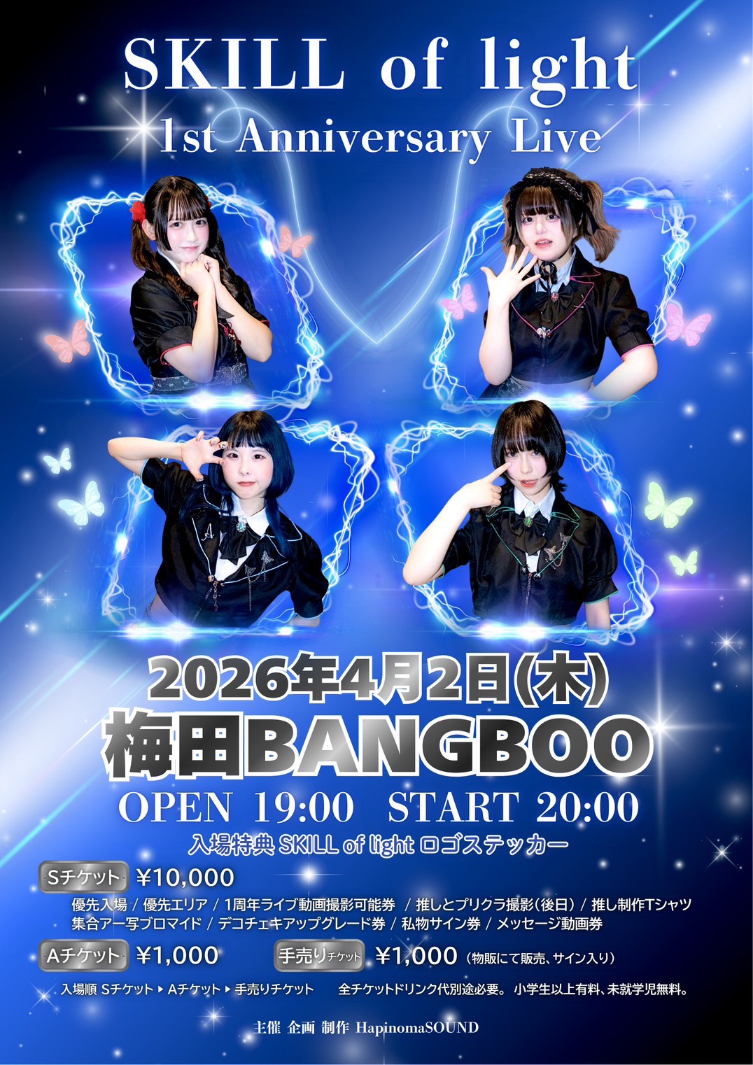 - チケット代 Sチケット10000円 (優先入場、優先エリア、1周年ライブ動画撮影可能券、推し制作Tシャツ、推しとプリクラ撮影(後日実施)、集合アー写ブロマイド、デコチェキアップグレード券、私物サイン券、メッセージ動画券) Aチケット1000円 手売りチケット1000円 +1drink700円 /配信¥1,500https://premier.twitcasting.tv/bangbooinfo/shopcart/417369