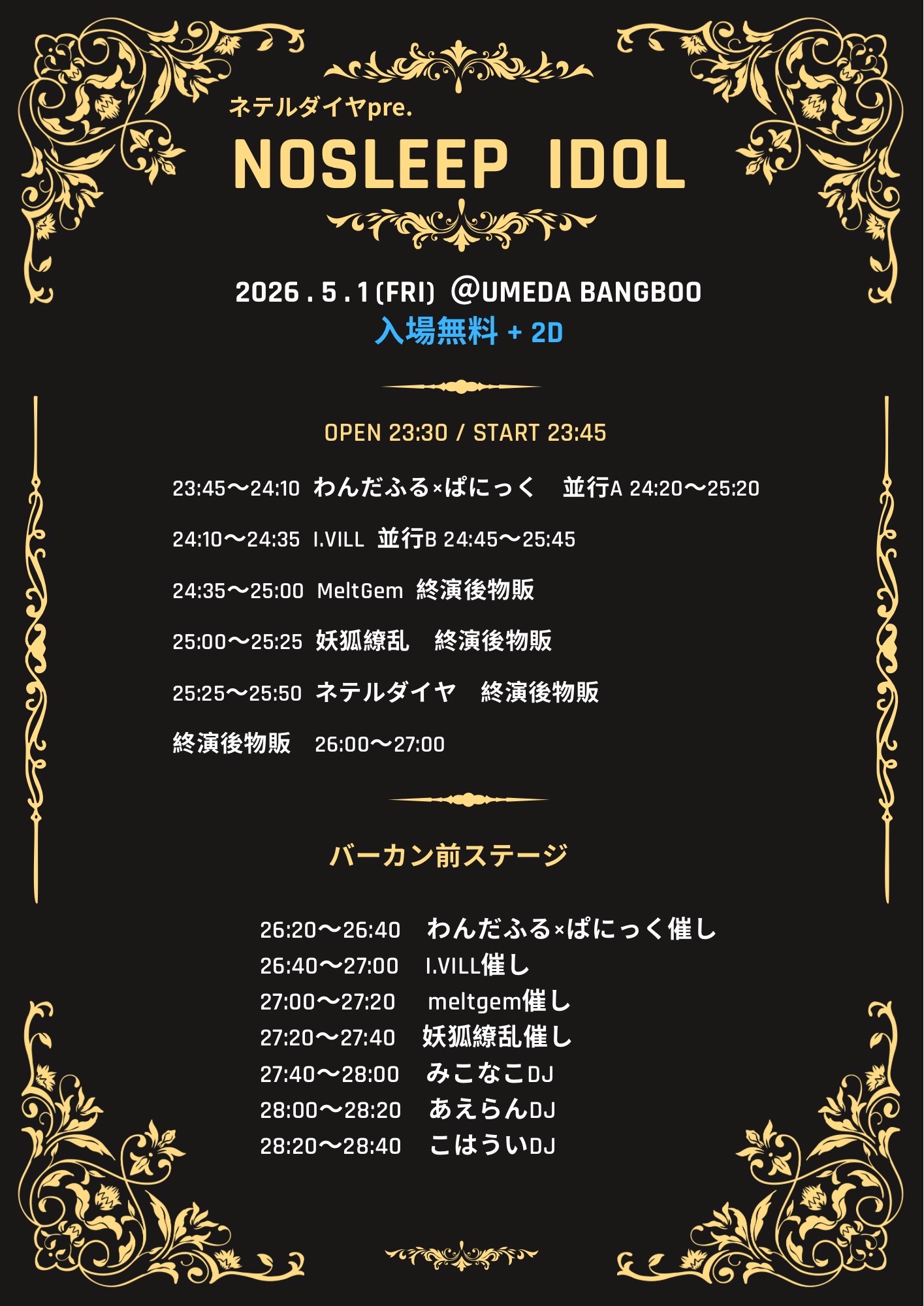 - 開場23時30分 開演23時45分