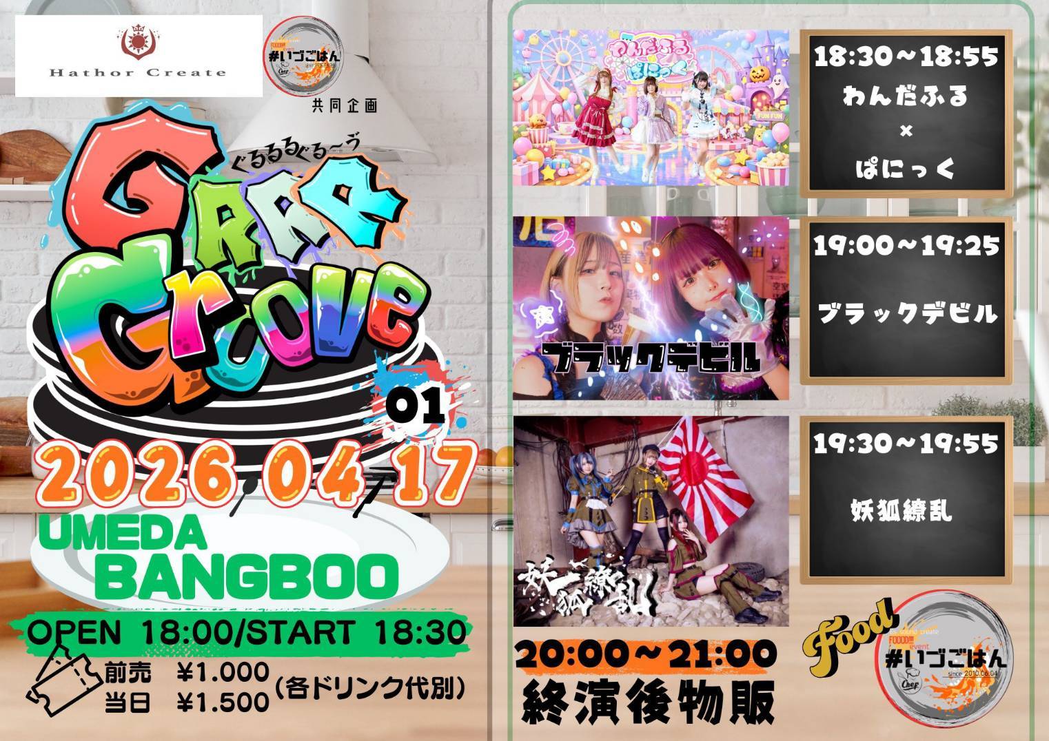 梅田 BANGBOO スケジュール 2026.4.17(Fri) GRRRGroove [ACT] わんだふる×ぱにっく/ブラックデビル/妖狐繚乱 [OPEN/START] オープン18:00/スタート18:30 [料金] 前売¥1000/当日¥1500(各ドリンク代別) 会場販売:無 (問)梅田BANGBOO info@bangboo.jp 06-6867-7828 〒530-0027 大阪府大阪市北区堂山町6-5 ペンギンスクエアビルB1F、B2F