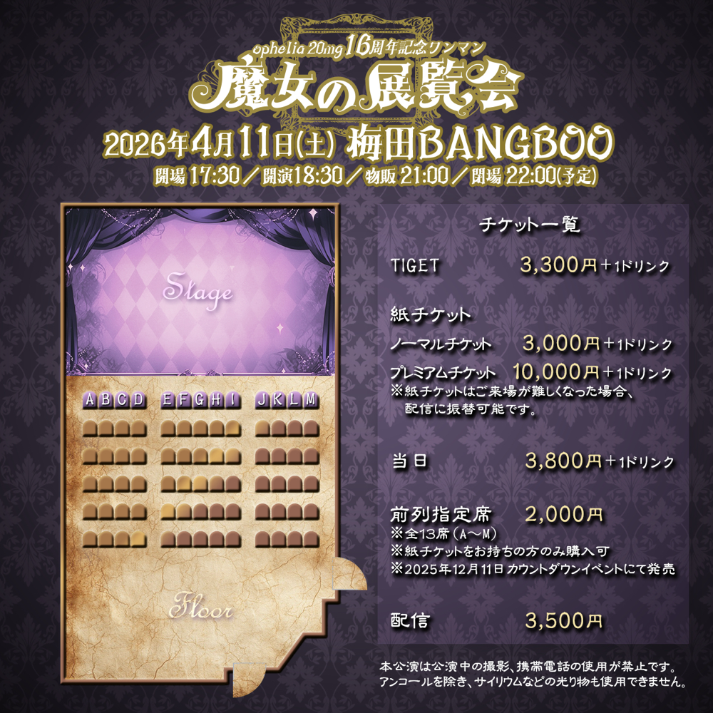 ophelia 20mg 16周年記念ワンマン 「魔女の展覧会」