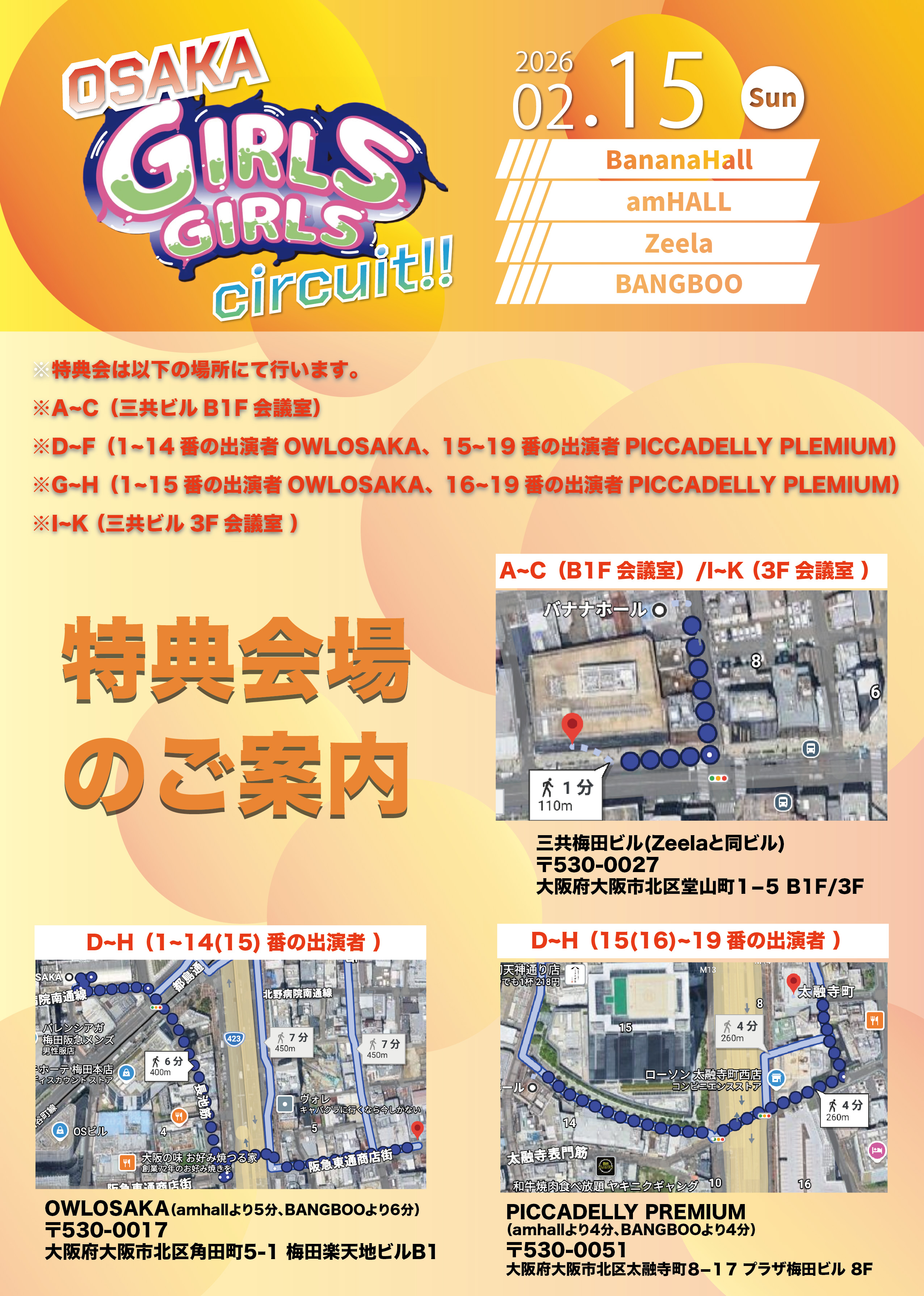 会場:BananaHall / amHALL / BANGBOO / Zeela / PICCADILLY PREMIUM
