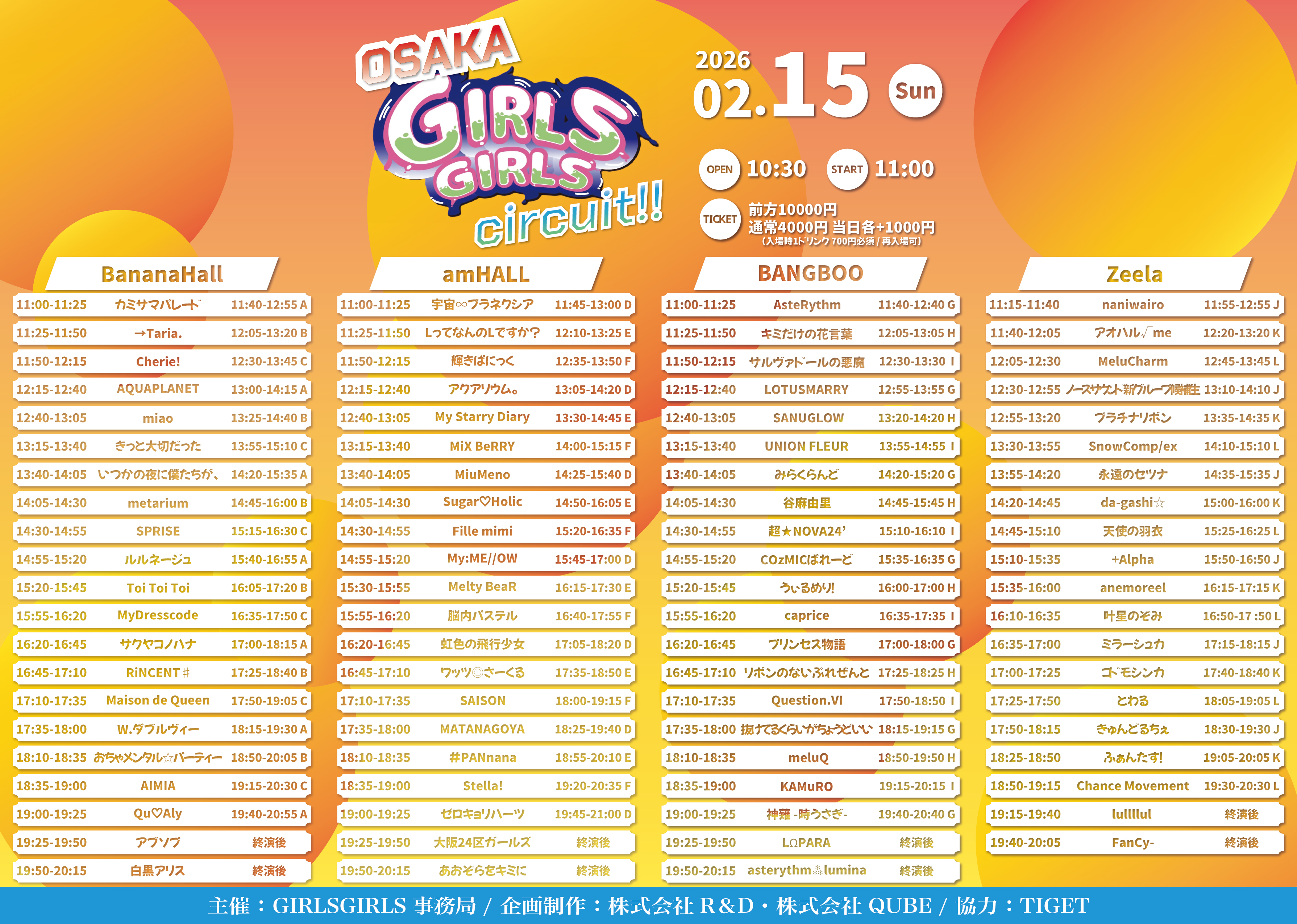 - 前方10000円 / 通常4000円 / 当日各+1000円 (入場時1ドリンク700円必須/再入場可)