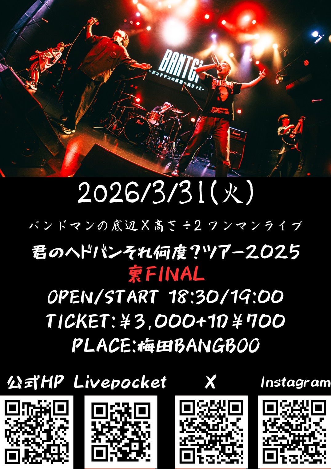 バンドマンの底辺×高さ÷2 ワンマンライブ『君のヘドバンそれ何度?ツアー2025 裏FINAL』