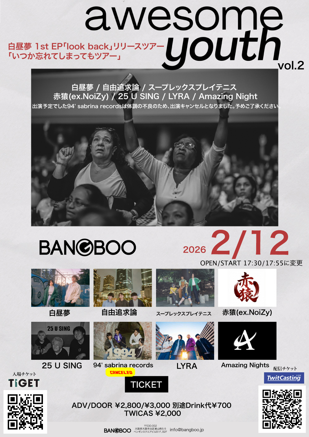 会場販売:無 (問)梅田BANGBOO info@bangboo.jp 06-6867-7828