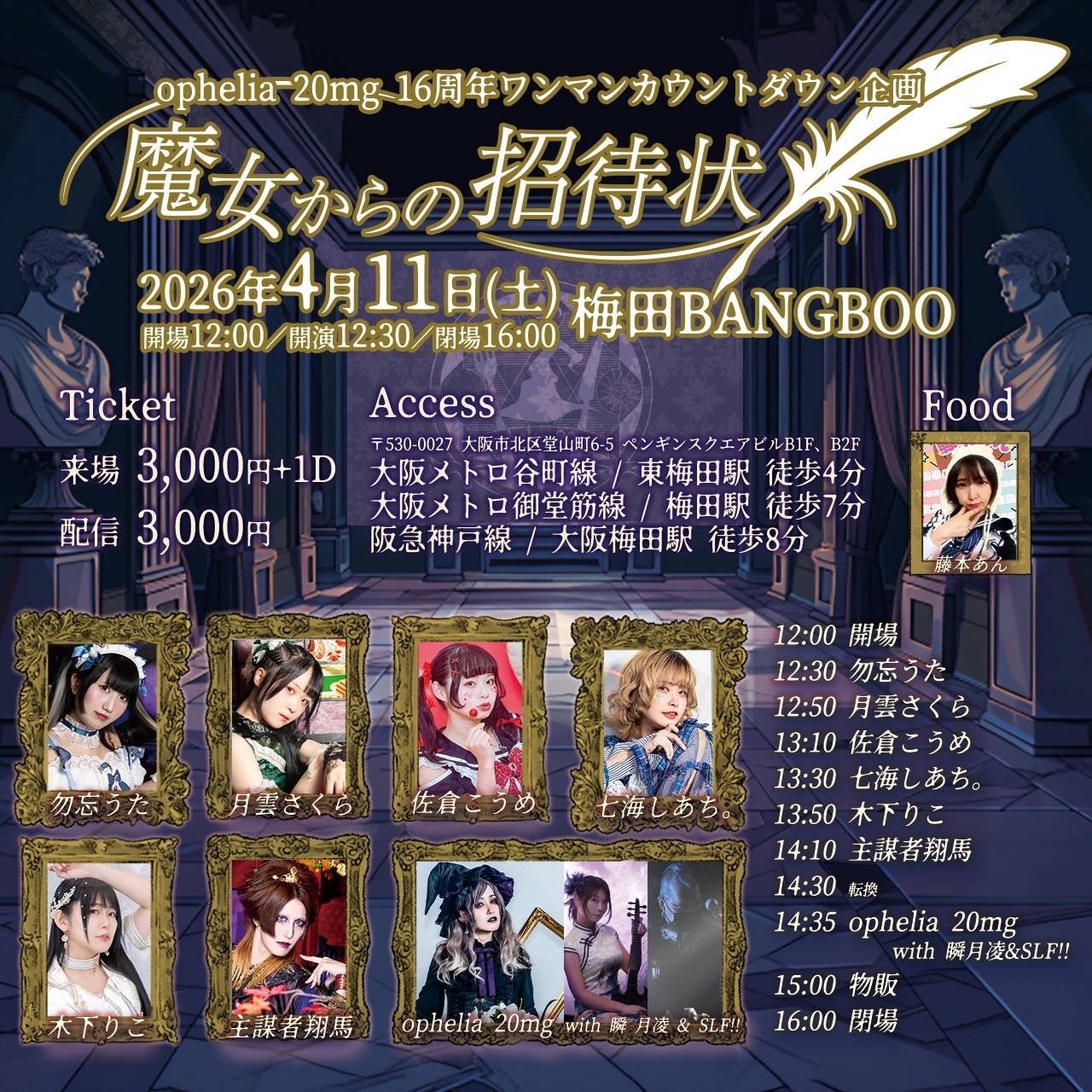 ophelia 20mg 16周年ワンマン カウントダウン企画 「魔女からの招待状」